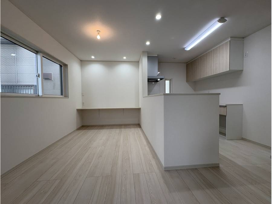 LDKは16帖、ご家族集まってでまったりとくつろげる空間が広がります。ダイニングにはカウンターが設けられお子様のリビング学習としてもご利用できます。