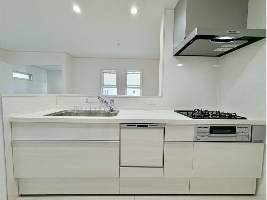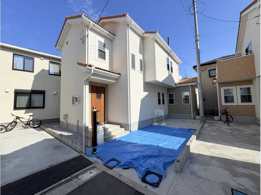 外観は、西洋風のオレンジ色の屋根と白い外壁が印象的で、見る人の心を引きつけます。駐車スペースは2台分確保されており、日々のお出かけや買い物も便利です。浴室乾燥機や食洗機付きキッチンなど、最新の設備も備え、快適な暮らしをサポートします。