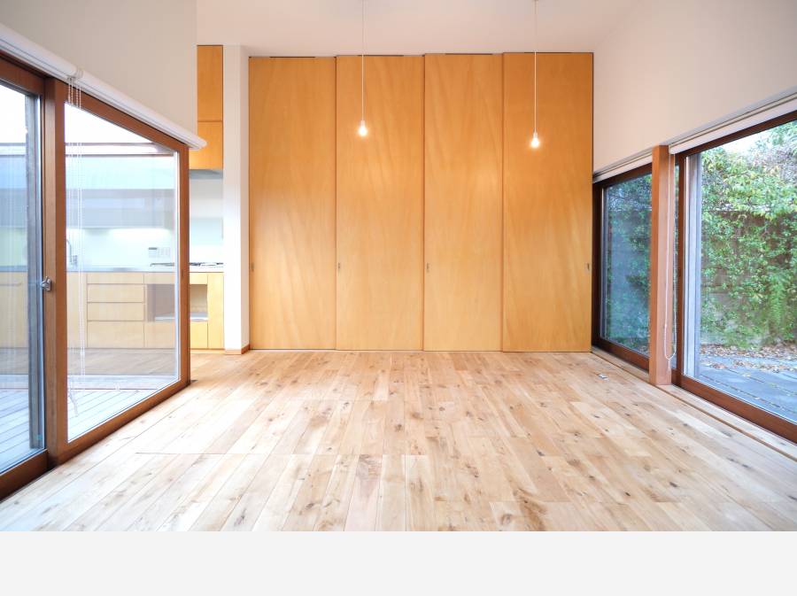 思わず触れたくなるような木の温もりを感じる自然素材の床。