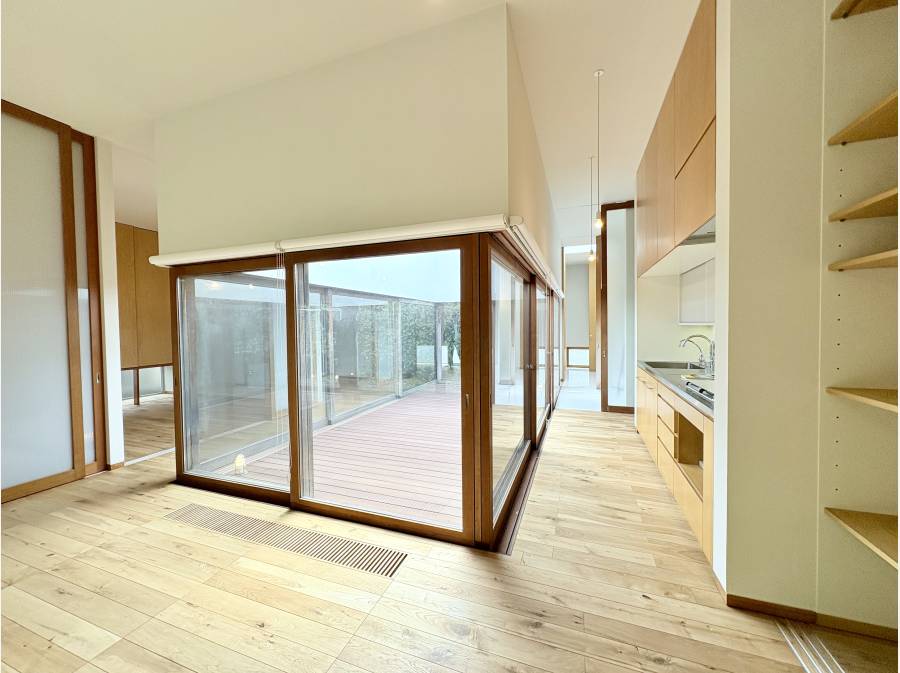 高い天井が生み出す開放的な空間が特徴です。