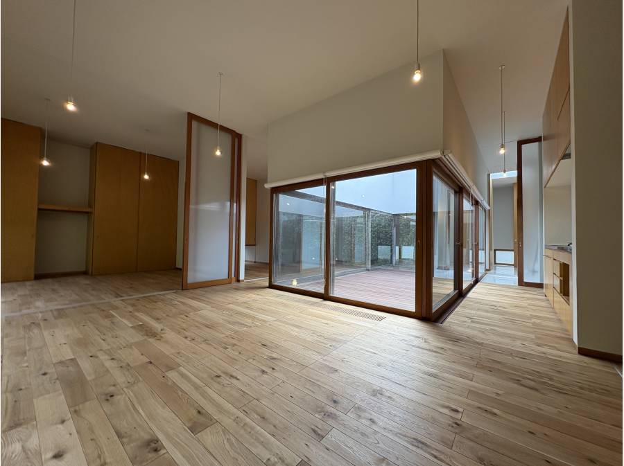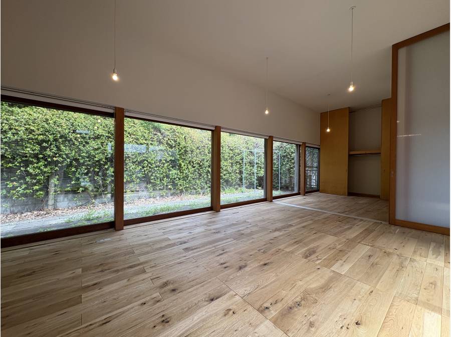 建物はエントランスが3か所あり、木製2重サッシや約3mの内部建具など、全てがフルオーダーメイドで仕上げられています。