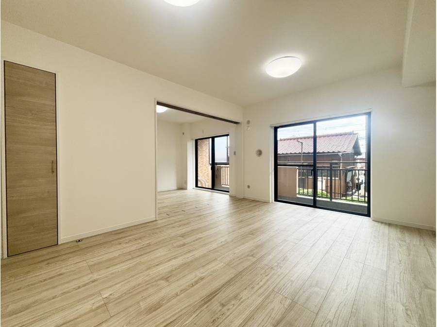 リビングは広々としており、バルコニーから差し込む光と風が室内を明るく快適に演出します。水まわりを含む設備は最新仕様に一新されており、新しい生活をすぐに始められる環境が整っています。また、収納スペースが豊富で、生活をより便利にする間取りが特徴です。