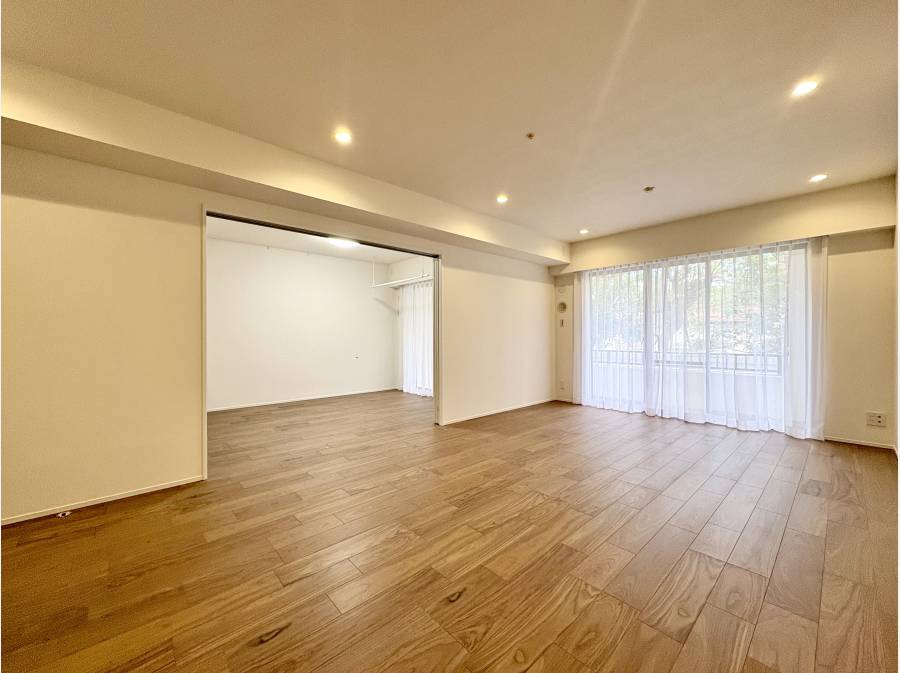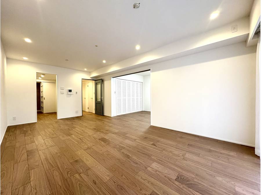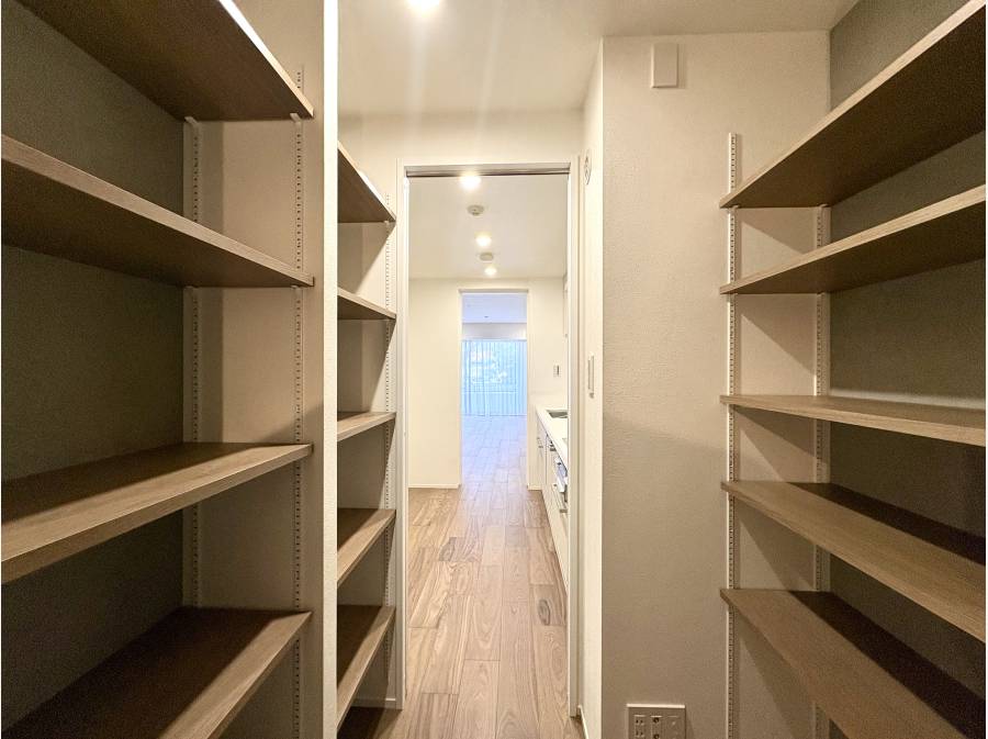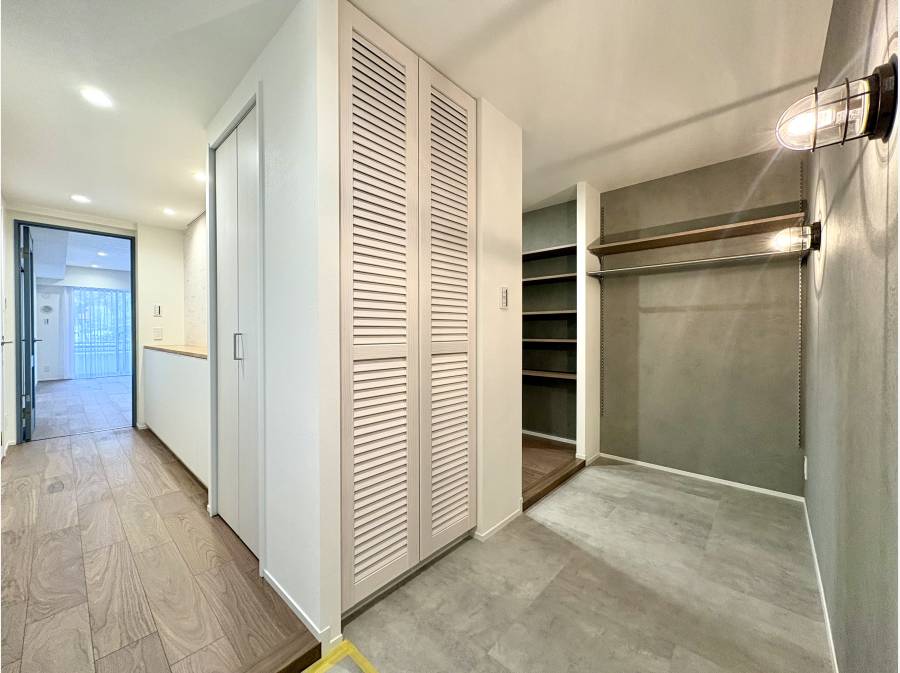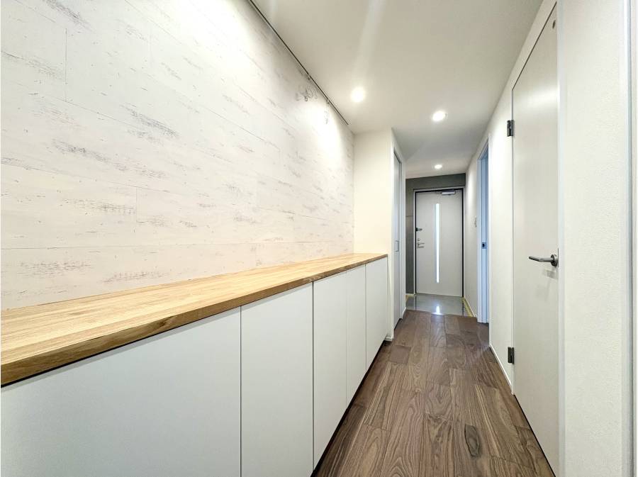 この住戸はリノベーションが既に施され、玄関横には広々とした土間スペースを新設。
