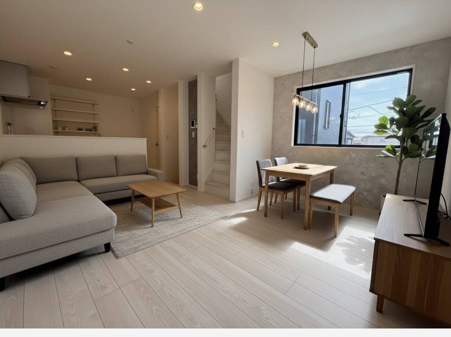2階リビングは清潔のある白を基調し、シンプルかつ、まとまりのあるリビングです。