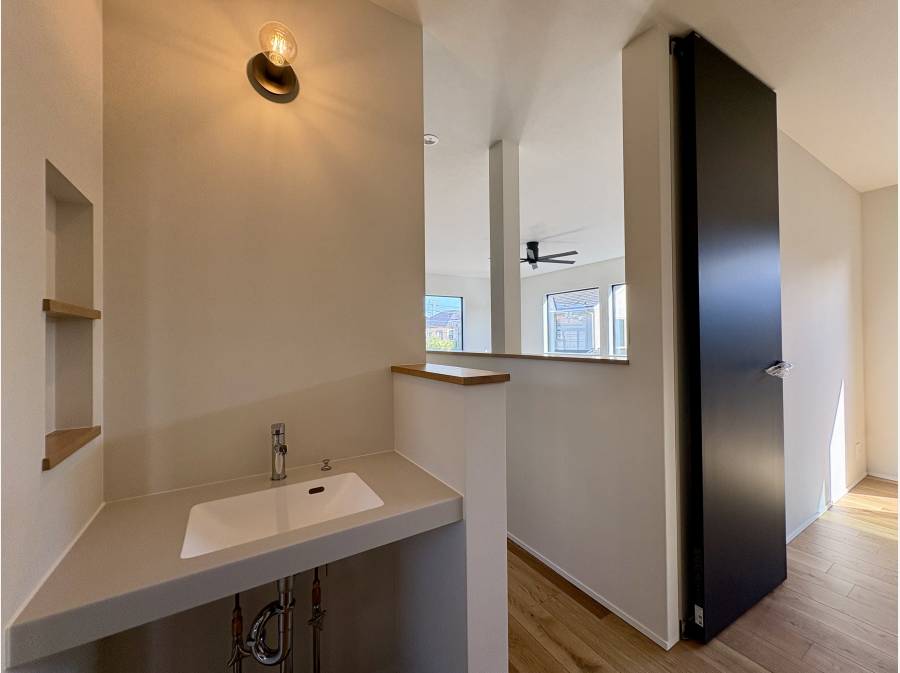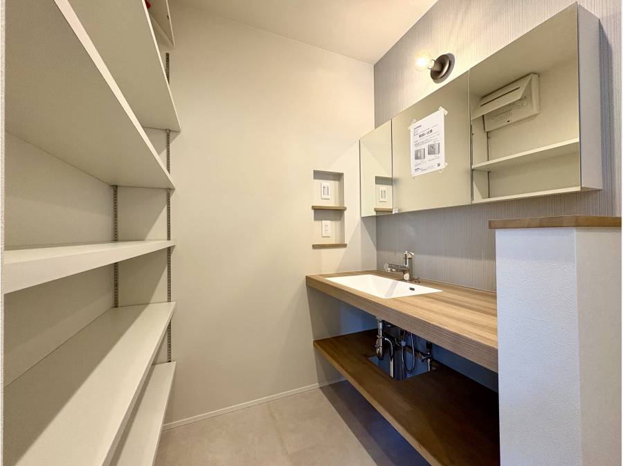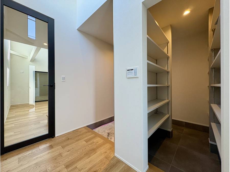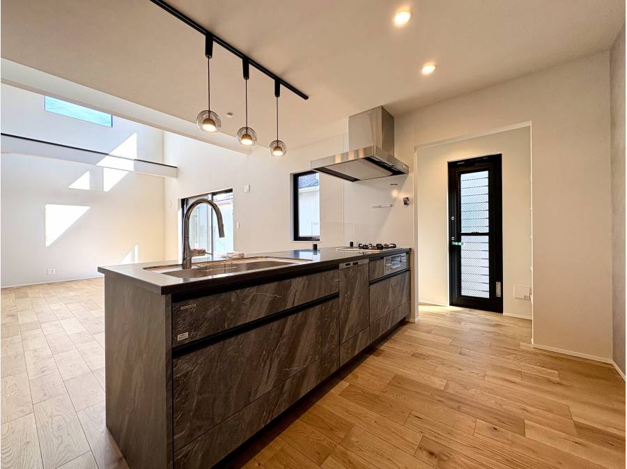 家族の中心となるLDKは約21.5帖の広さを誇り、吹抜から降り注ぐ陽光が室内を明るく照らします。また、収納力も充実しており、キッチン横のパントリーや約2.0帖のウォークインクローゼット、さらに約8.1帖の広々としたロフトがあり、季節用品や趣味の道具もすっきり片付きます。