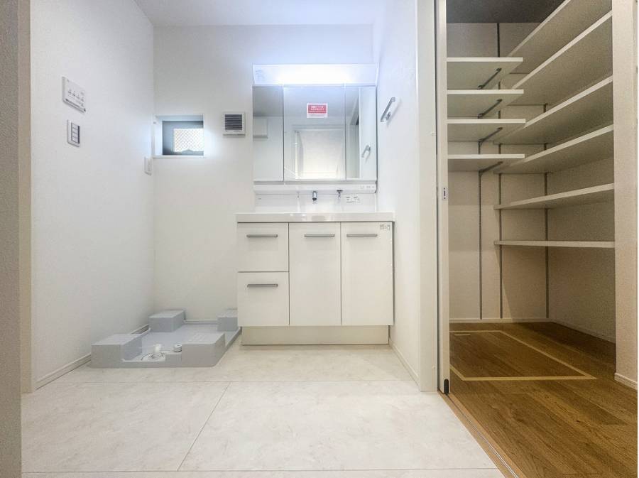 シームレスなパントリーは奥行きがあり、リネンスペースなども兼ねた多様な使い方が叶いそうですね。