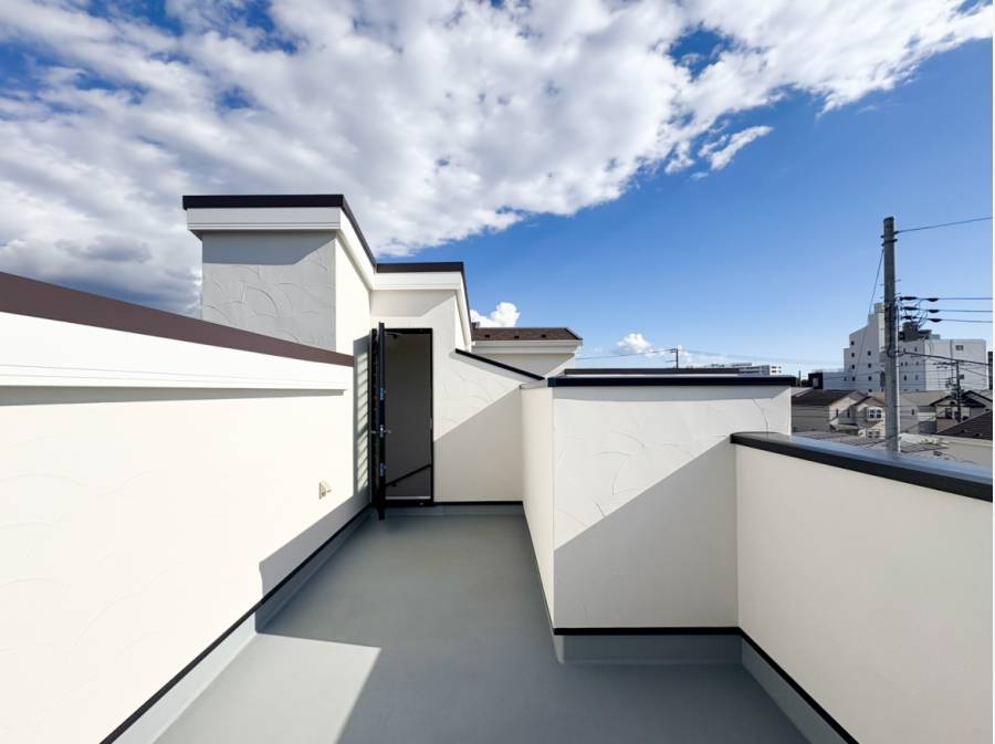 お洒落な塗壁や開放感あるスカイバルコニーなど建売ながらハイクオリティなお家となっております。