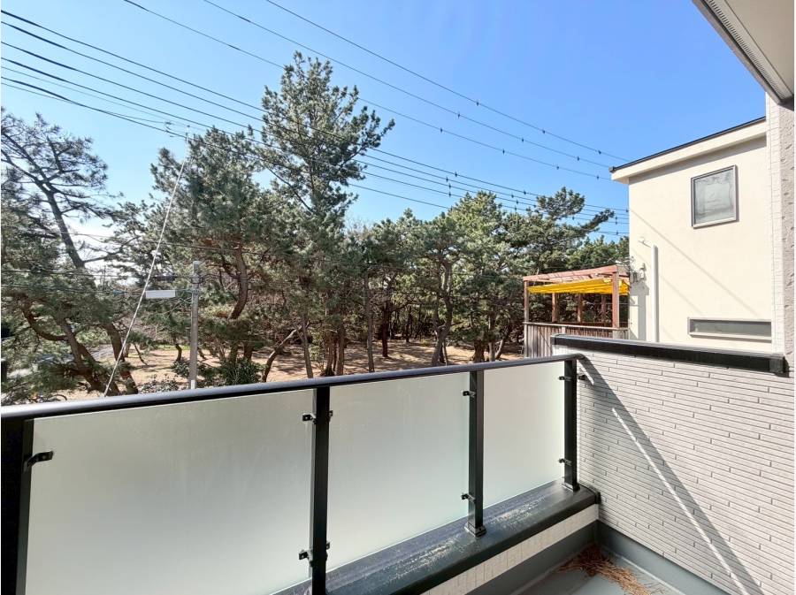 目の前には緑豊かな小和田浜公園が広がり、通りを挟んですぐのロケーションです。バルコニーからはその美しい緑を楽しむことができ、心癒される眺望です。