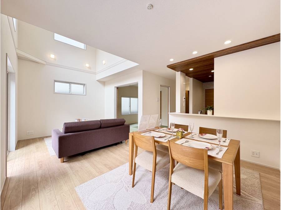 LDKは吹き抜け部分からも陽が差し込み、家族時間を温かく包んでくれます