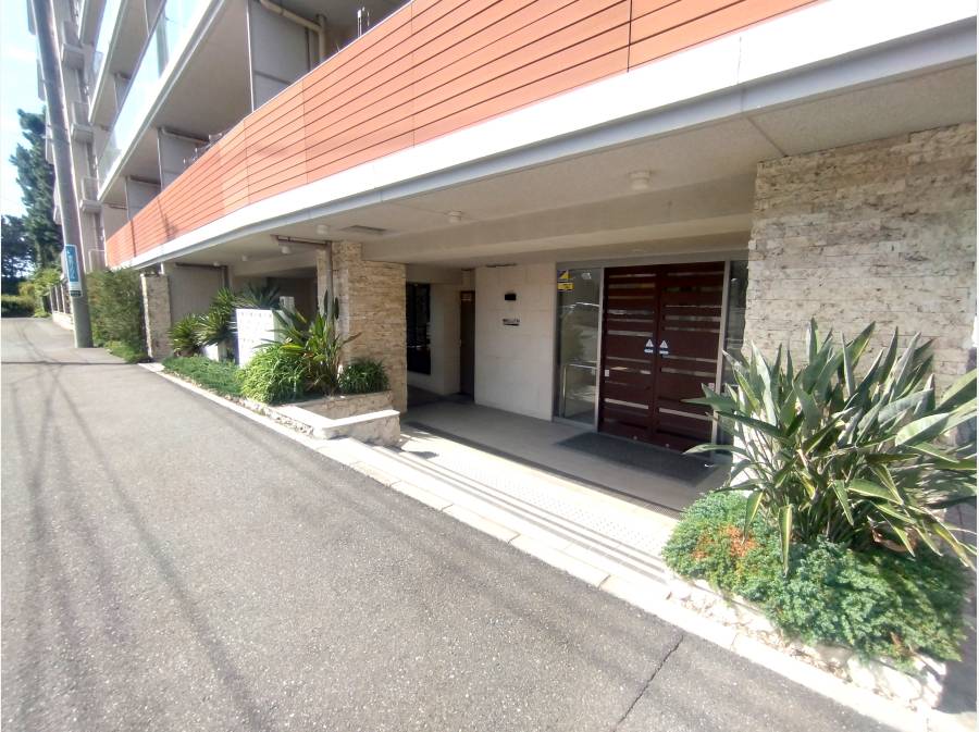 マンション正面にはバス停があり、雨の日でも駅へのアクセスがスムーズで、利便性の高い立地が魅力です。