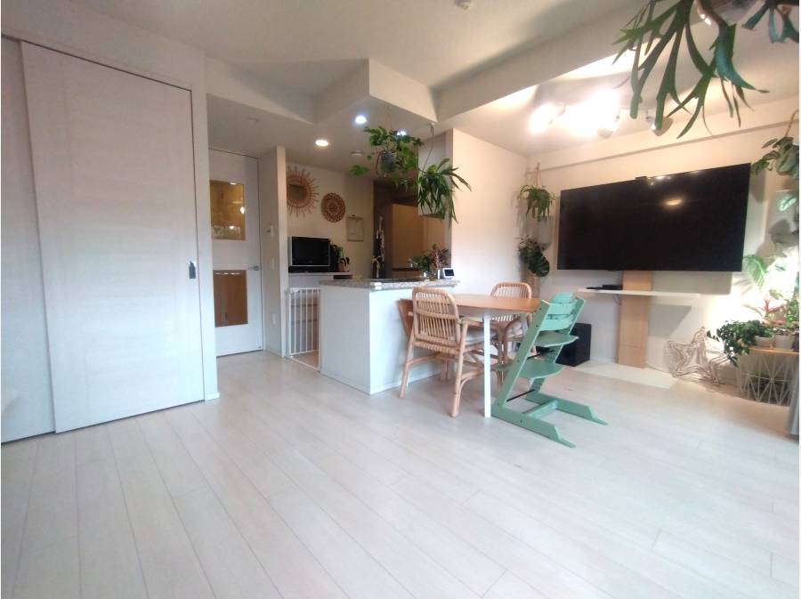 室内は約14.6帖のLDKに床暖房を備え、キッチンには便利な浄水器を設置。ウォークインクローゼット(WIC)による収納力も嬉しいポイントです。