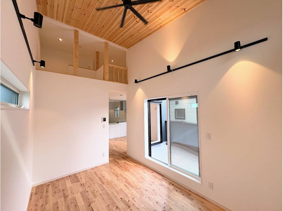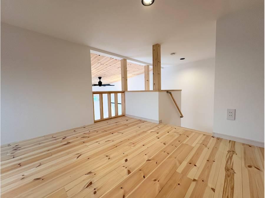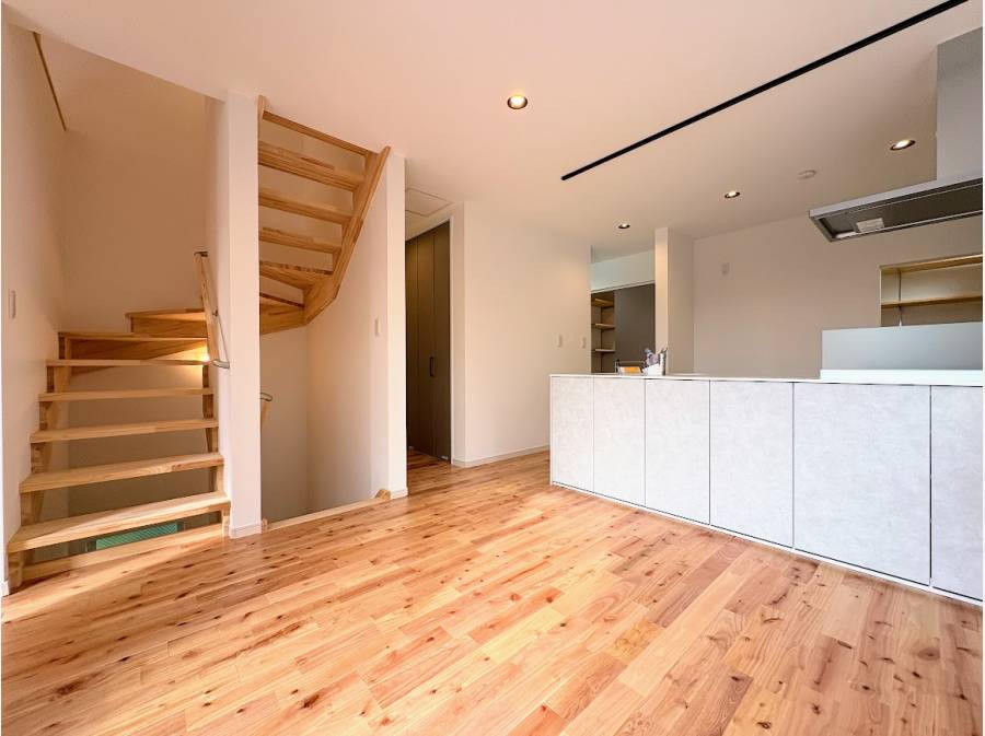 デザイナーズハウスならではのこだわりが詰まった外観と内装が特徴で、床には西南カバの無垢材を採用。さらに、勾配天井にはパインの板を使用しており、木の温もりを感じながら快適にお過ごしいただけます。