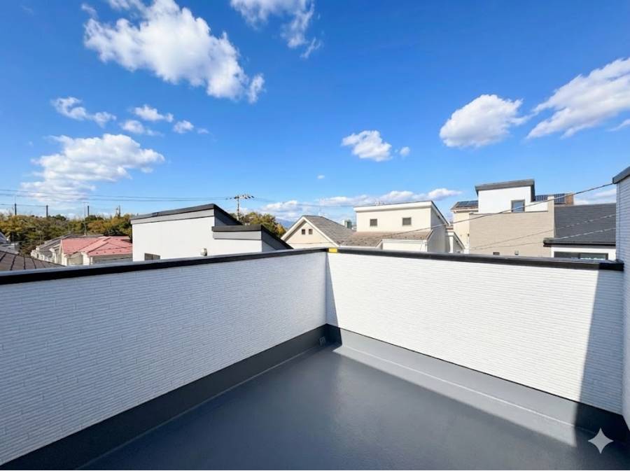 この物件の特徴のひとつは、広々としたルーフバルコニーです。周囲の目を気にすることなく、青空の下で読書やアウトドアを楽しむなど、リラックスした時間を過ごすことができます。