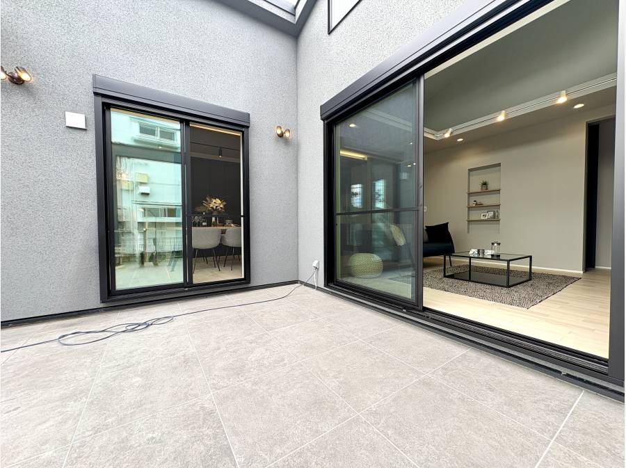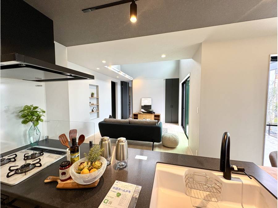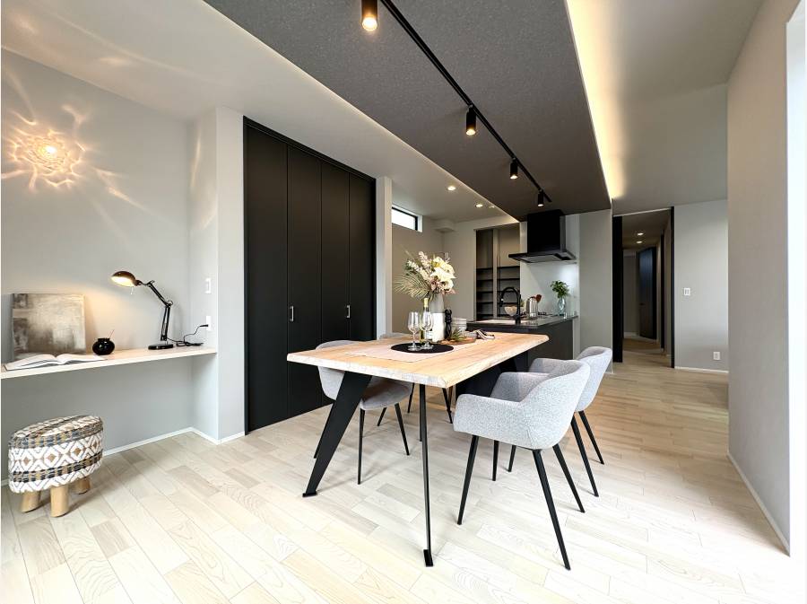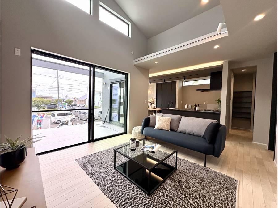 25帖の勾配天井LDKと広々としたテラスが生み出す開放感に加え、ZEH水準の快適さと上質なデザインが調和した住まいです。