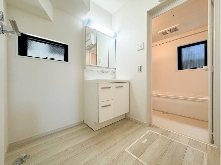 キッチンから扉一つで繋がる水周りスペース。