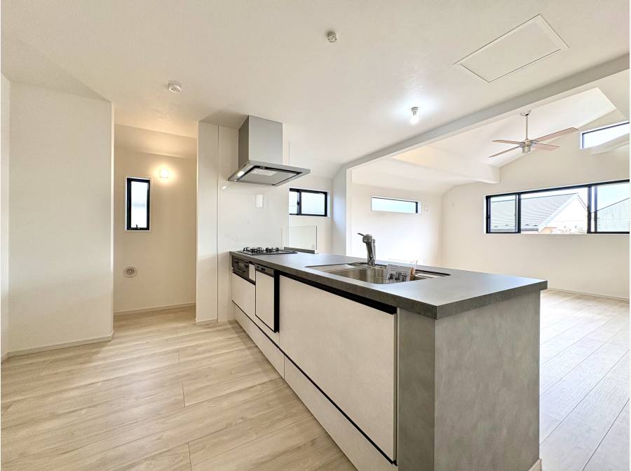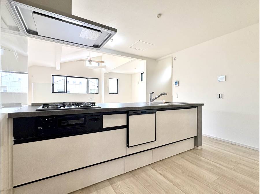 足元から心地よく暖める床暖房を完備したリビングは、家族が自然と集まる明るい空間を演出します。