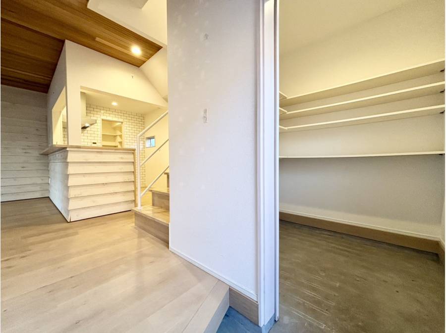 外観はグレーと木目が美しく融合したナチュラルモダンスタイル。大きな窓から差し込む光がリビングを明るく照らし、風通しの良い設計が、まるで“暮らすリゾート”のような快適さをもたらします。