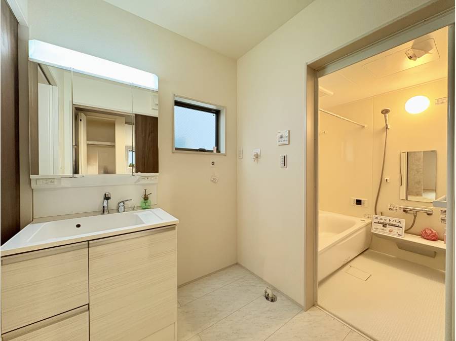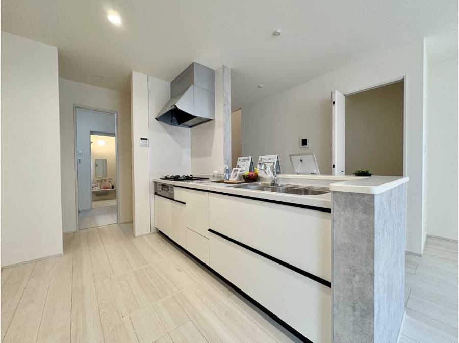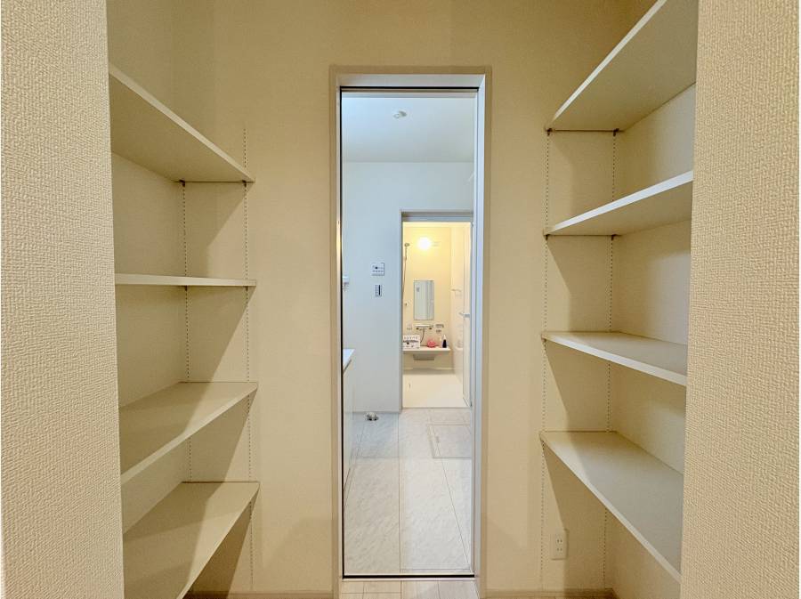 キッチンの隣には収納スペース脱衣室とも繋がっていて、買い物から帰宅後スムーズに利便性のある生活動線が引かれています。