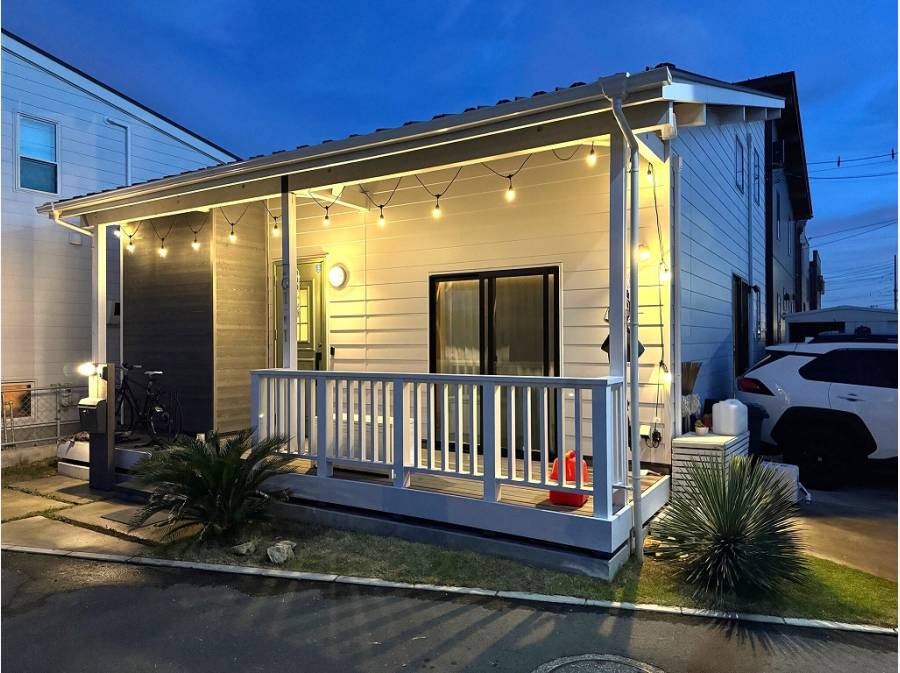 カバードポーチがどこかサーフカルチャーの香りを感じさせます。