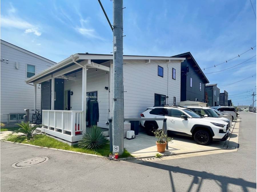 開放感のある角地に佇む、白を基調とした爽やかなお家。