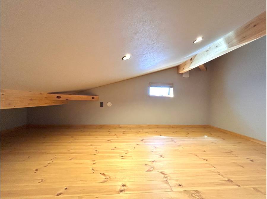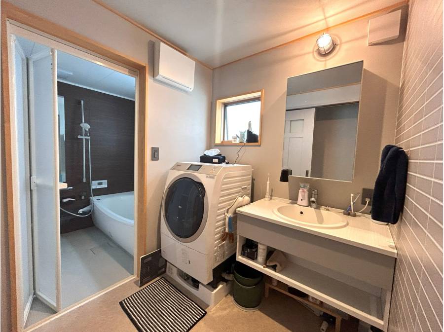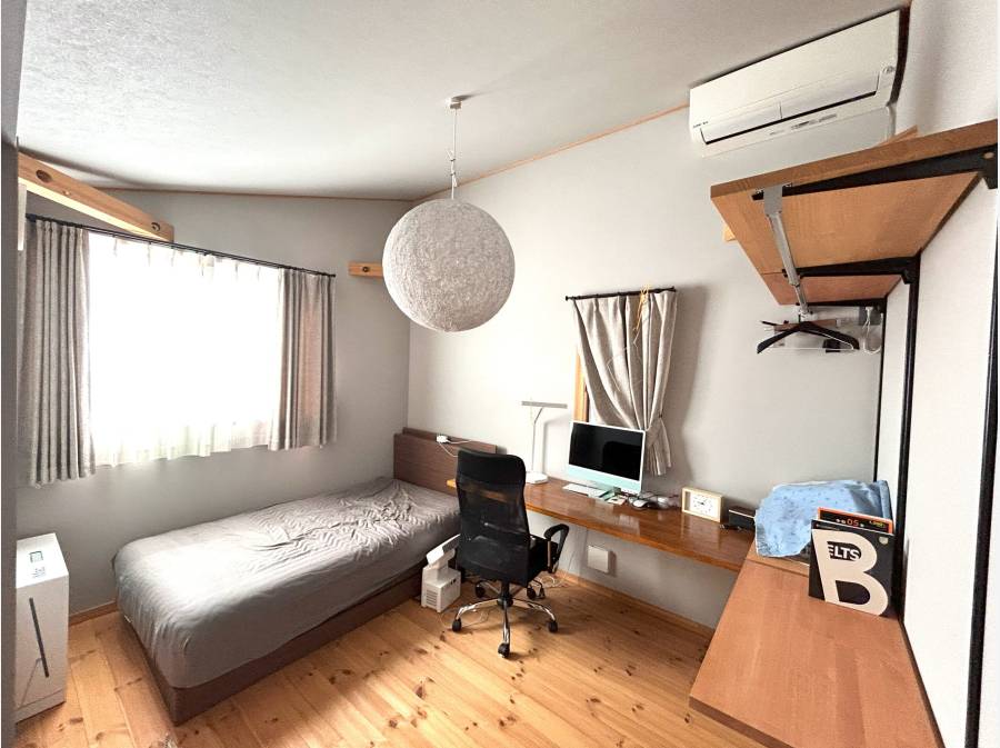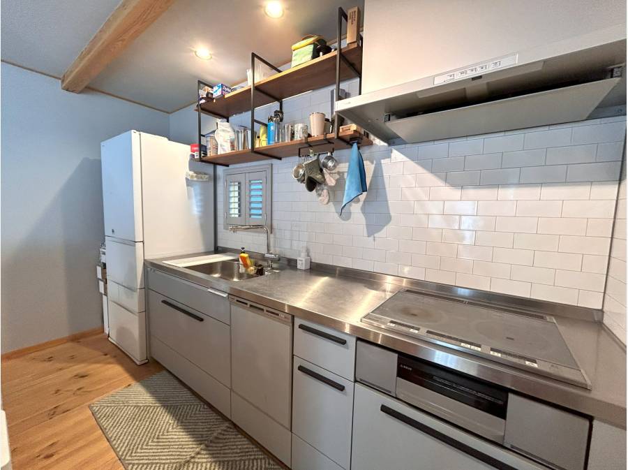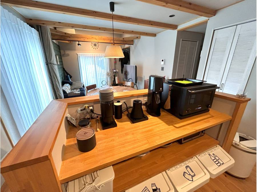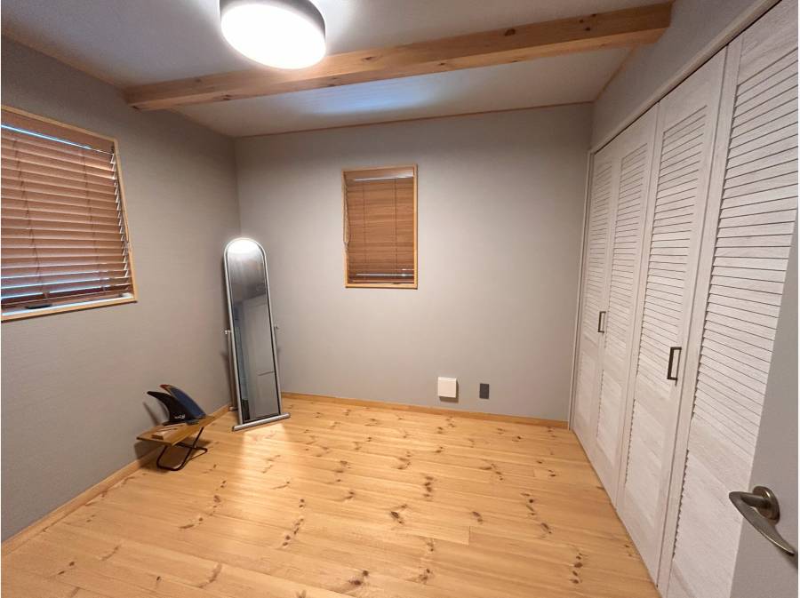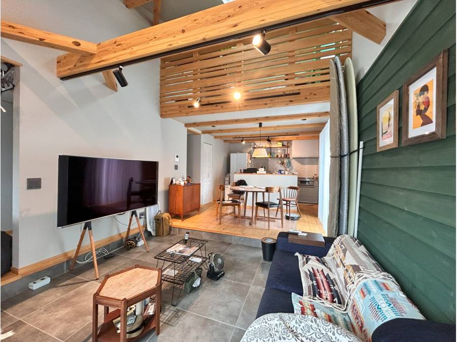 リビング・ダイニング・キッチンは、この家の魅力が詰まった空間です。吹き抜け構造で開放感を感じられる設計に加え、コンクリート仕上げのリビング土間が特徴的です。リビングと庭が一体となるような設計がされており、趣味のアイテムを飾るなど自由な使い方ができます。この空間が、日々の生活に新しい楽しみをもたらしてくれるでしょう。