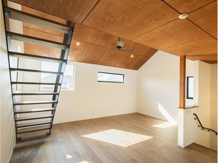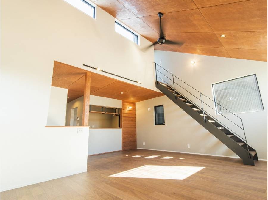 開放感あふれる勾配天井のLDKと広々としたスカイバルコニーが魅力の『The CABIN』。