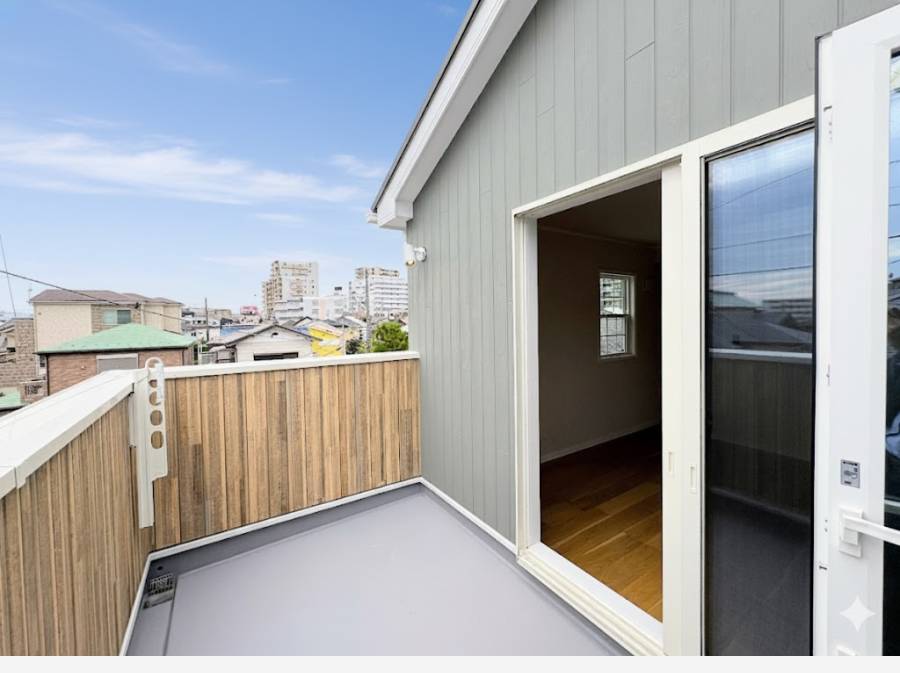 3階のバルコニーは広々としており、日当たりも良好です。湘南の爽やかな風を感じながら、開放的な時間をお楽しみいただけます。