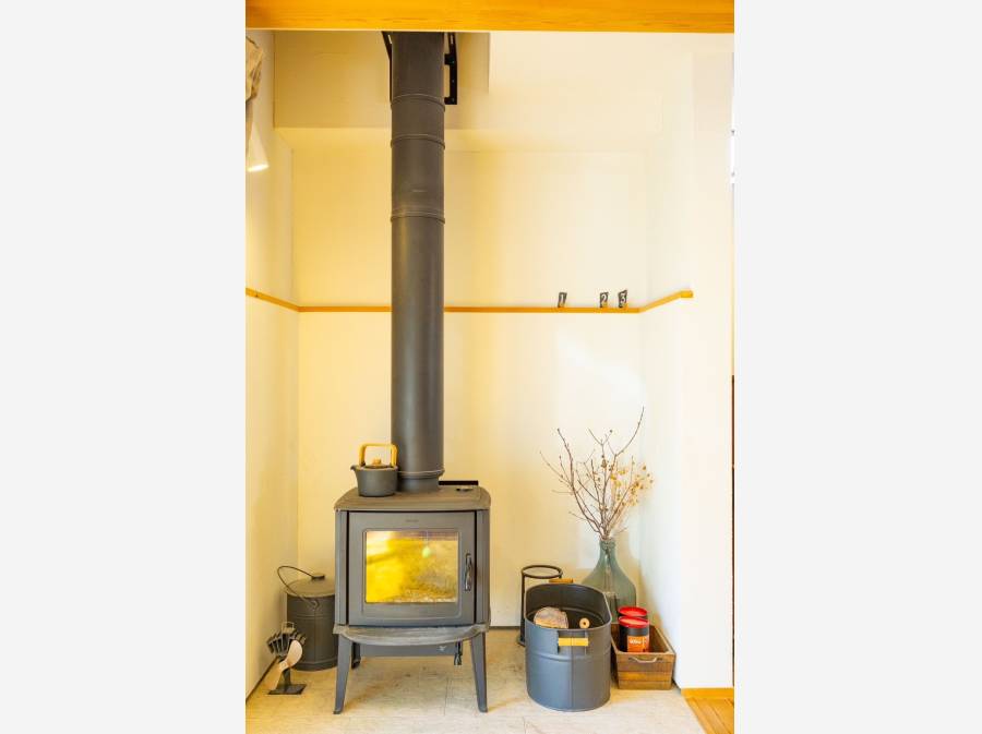 このお住まいの主役は、約18.8帖のLDKに設えられた「薪ストーブ」
