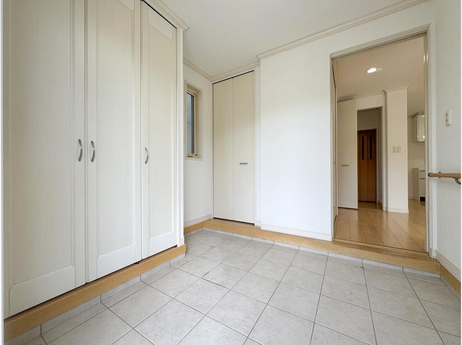 段差の低い開放的な玄関やフラットフロア、バスルームの広い間口など、永く快適に暮らす工夫が施されています。