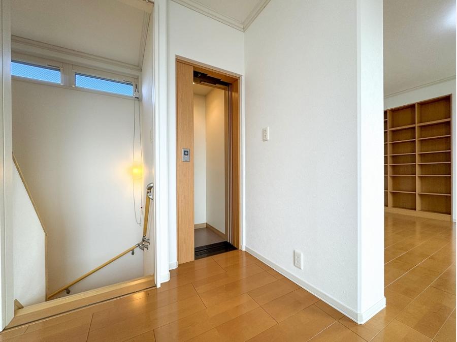 眺めの良いルーフバルコニーが隣接する約14帖のお部屋にはたっぷりの本棚が並びます。