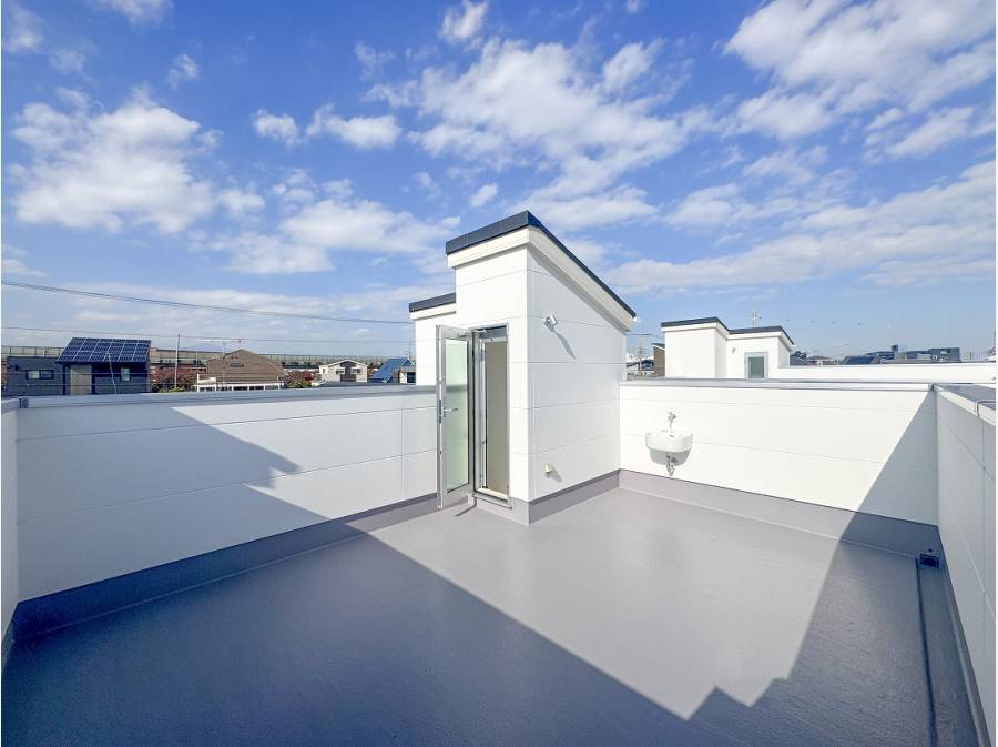 自慢のルーフバルコニーからは、空と街並みがダイナミックに広がるパノラマビューを堪能。