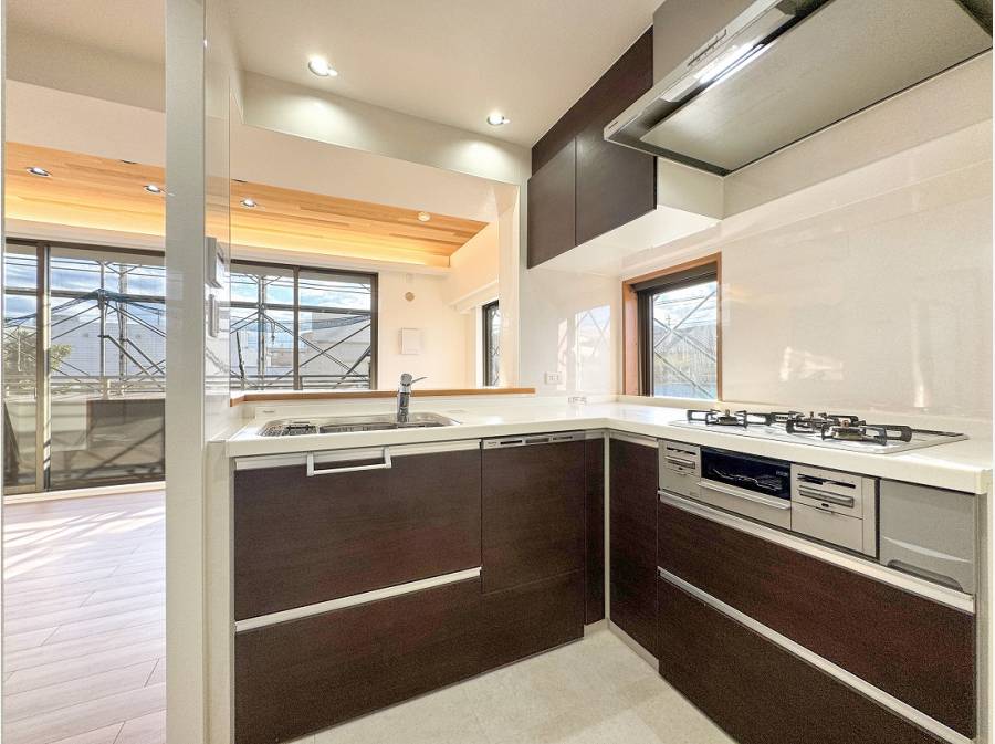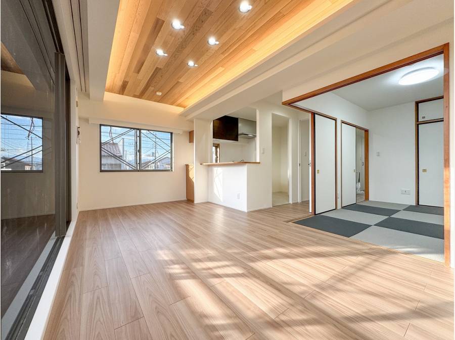 LDKには和室が寄り添い、コーナー間仕切りをフルオープンにすることで20帖超の開放的な空間が生まれます。