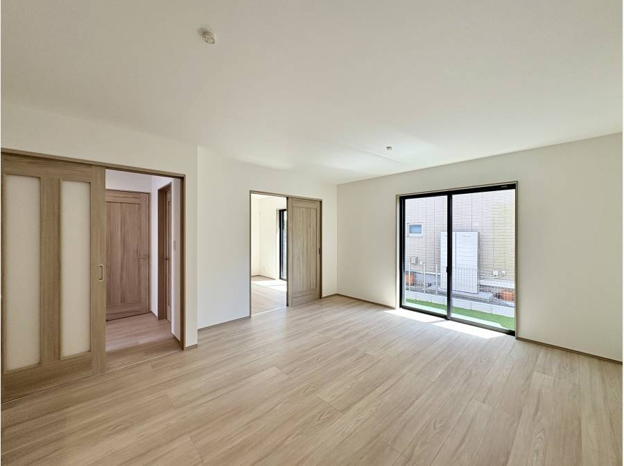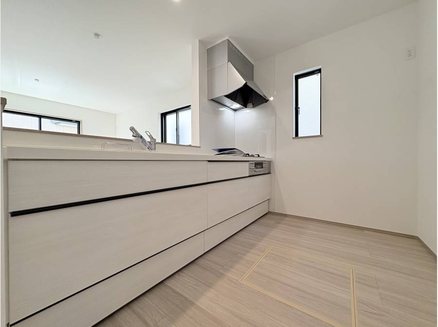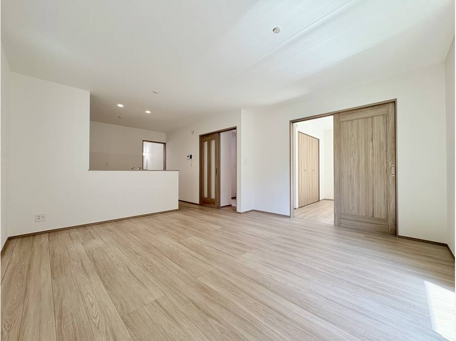 約15帖のLDKには対面式キッチンがあり、家族の会話が弾む寛ぎの空間が広がっています。