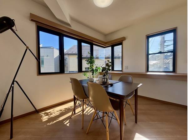 敷地面積約165㎡、建物面積約136㎡のゆとりある4LDKプラン。西・北側公道に面した角地につき、陽当たり・通風ともに良好です。室内は床材やクロス、キッチン・浴室・洗面・トイレなど水回り設備を一新し、温かみのあるナチュラルテイストに刷新。全居室収納付きで使い勝手にも配慮されています。