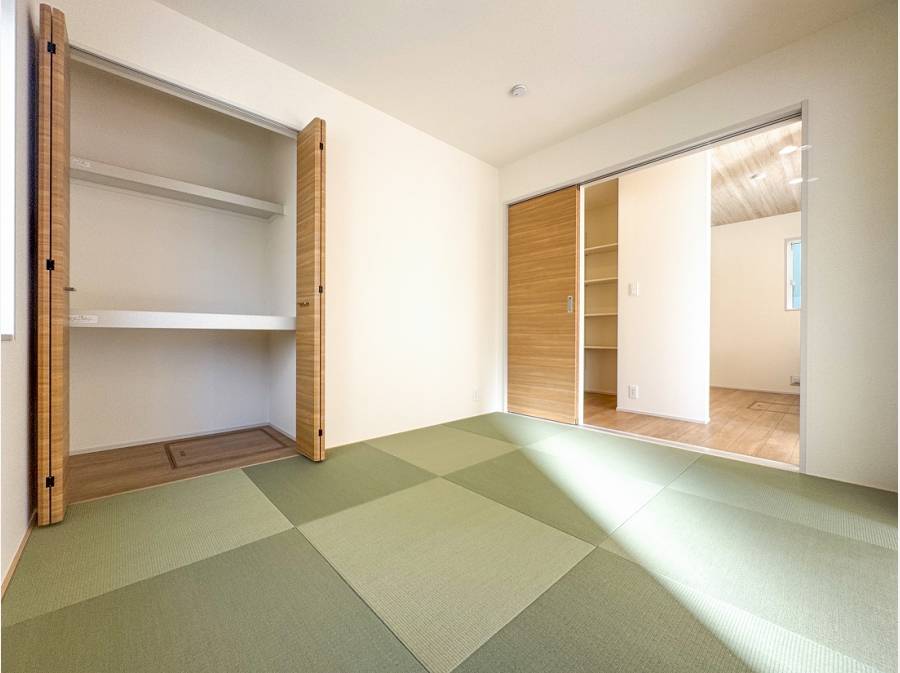 スッキリとした縁なし畳の和室は、洋の雰囲気を併せ持つモダンな印象。