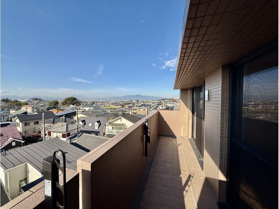 この住まいのポイントは、約74㎡の広々としたルーフバルコニーです。富士山を望むその空間は、光と風に包まれた開放的なプライベートエリアとなっています。アウトドアリビングとして、ゆったりとした時間を過ごしたり、大切なゲストを迎える場所としても最適です。