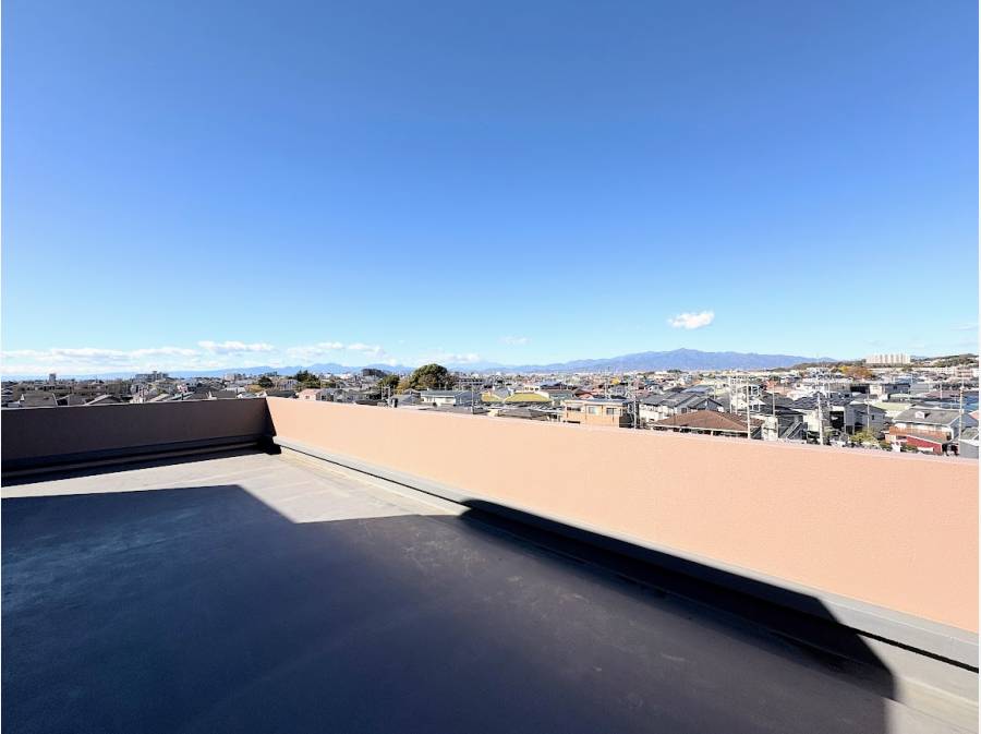 この物件の魅力の一つは、富士山を望む約74㎡の広々としたルーフバルコニーです。第二のリビングとして、青空の下で贅沢なひとときをお楽しみいただけます。