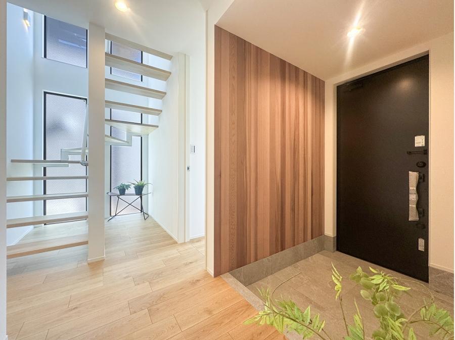 扉を開くと家族とゲストで使い分けのできる2way動線の玄関がお出迎え。
