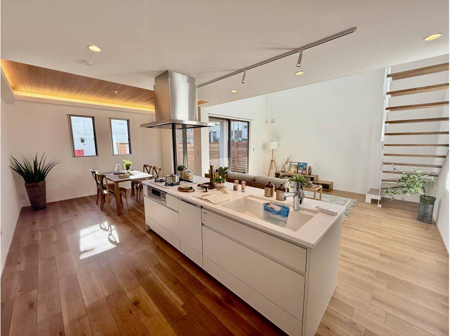 JR東海道線「辻堂駅」徒歩13分。吹抜けLDKとアイランドキッチンが魅力。駅と海への距離が程よい家です。