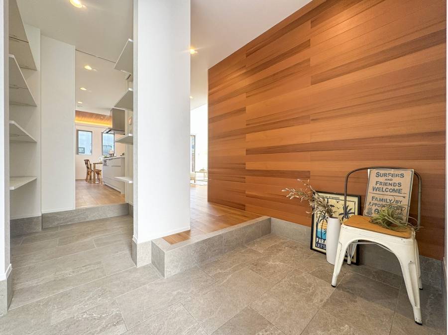 アプローチの彩りに導かれるように室内へ入ると、奥行きたっぷりのシューズーインクロークが出迎えます。