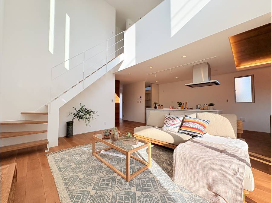 家事動線に配慮した開放感あふれる空間設計で、暮らしやすさとデザイン性を両立しています。
