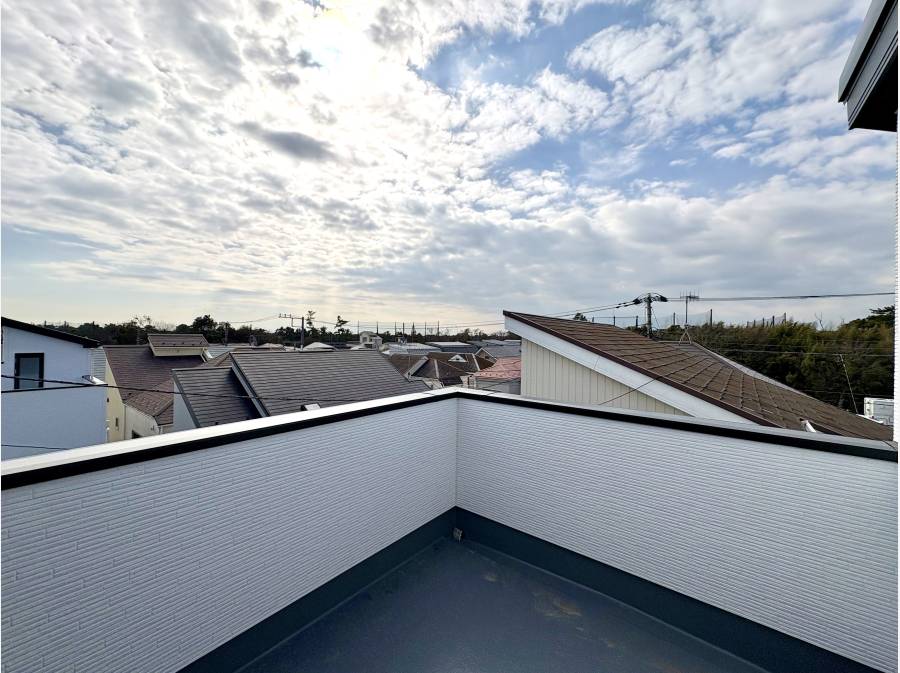 湘南・浜須賀の穏やかな暮らしを、開放的なルーフバルコニーと17帖超のLDKが演出。ZEH水準の安心感と共に家族の新たな生活を。
