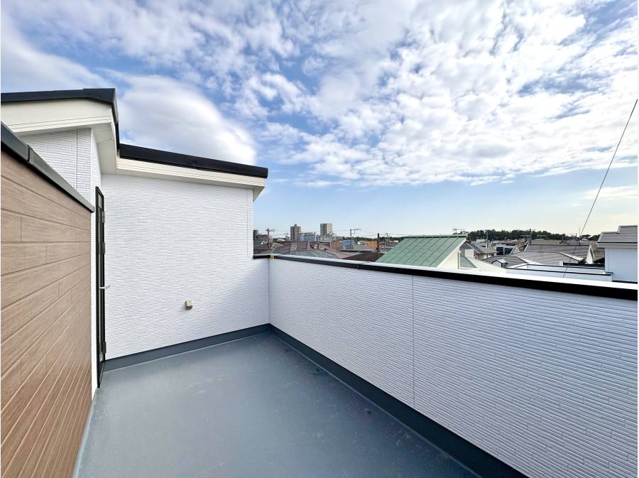 ご紹介する棟の魅力は、プライベートな屋外空間として楽しめるルーフバルコニー。