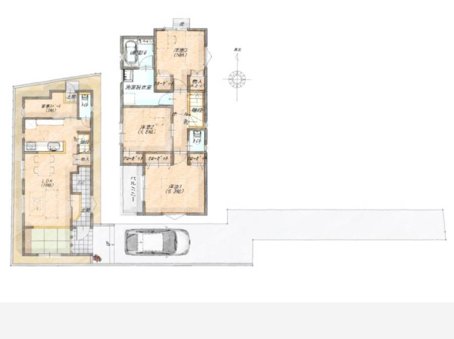 | 間取り | 3LDK + ユーティリティ+畳コーナー+シューズインクローク 間取り・区画図を取り寄せる | 構造・階建て | 木造 地上2階 |