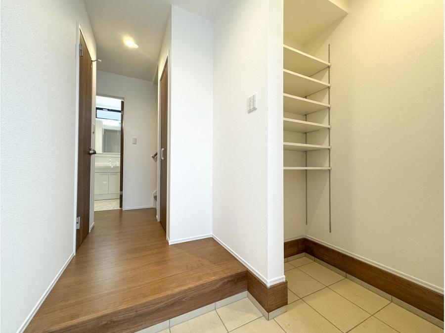 玄関のシューズインクロークやキッチンに備えられたパントリーなど、必要な場所にたっぷりの収納が用意されています。