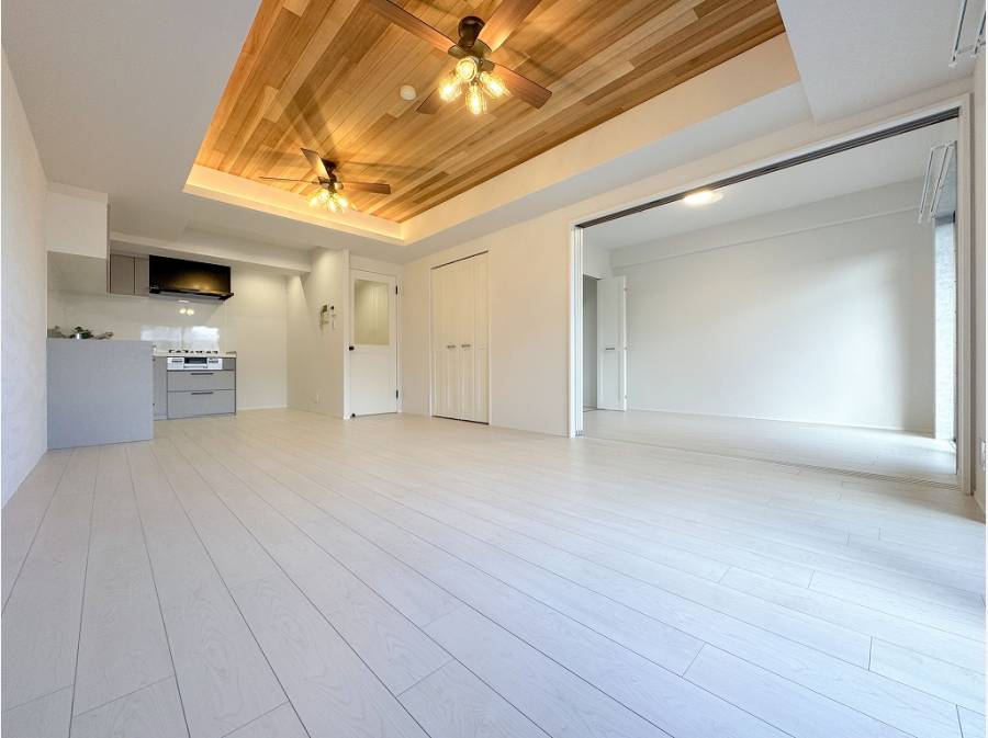 南東向きで暖かなLDKは、木質感のある折上げ天井が印象的です。