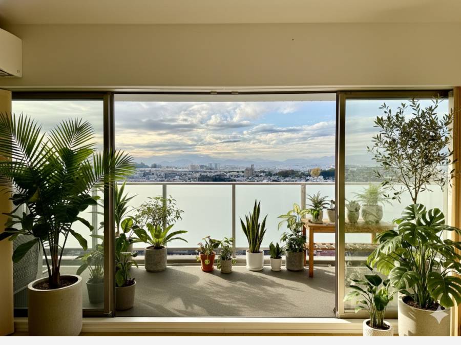 この物件の魅力は、日常の中に「見晴らす時間」が自然と組み込まれていることです。天気の良い日には遠くまで視界が抜け、朝の光や夕暮れの空模様が、暮らしのリズムを穏やかに整えてくれます。(天候によって富士山も大きく望みます)