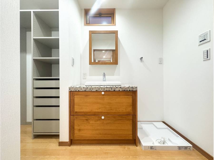 洗面室からアクセスできるファミリークローゼットなど、日々の家事を快適にする工夫も随所に光ります。