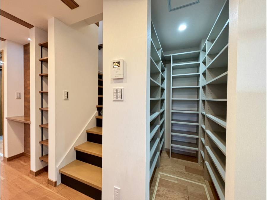 扉のない収納スペースが、空間をよりのびやかに感じさせてくれます