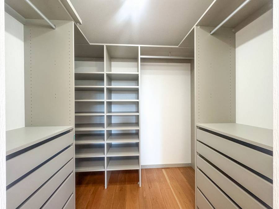 パントリーやリネンスペースに加え、なんと全居室にウォークインクローゼットが完備された贅沢な間取り。